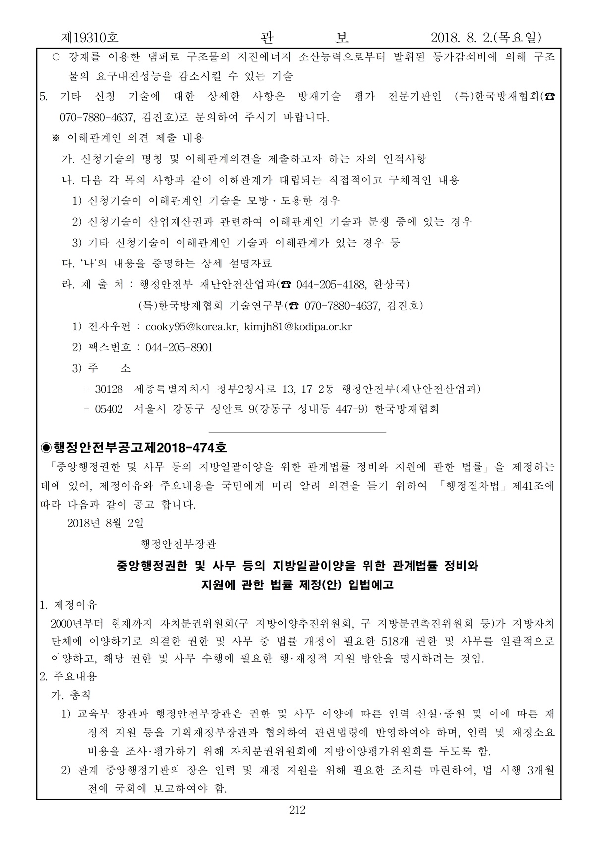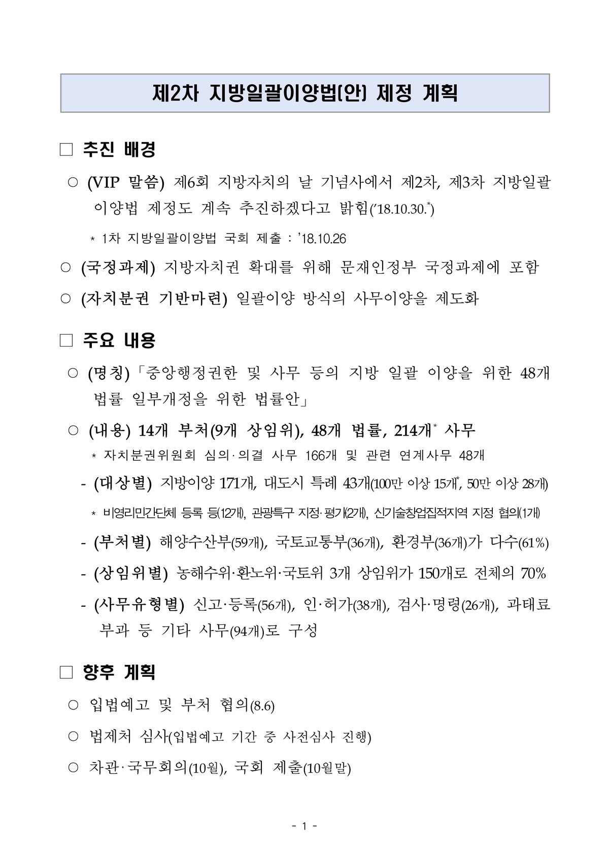 | 71 | 일반기록물 | 「중앙행정권한 및 사무 등의 지방일괄이양을 위한 관계법률 정비와 지원에 관한 법률」 제정(안) 입법예고 | 행정안전부 | 2018 |
