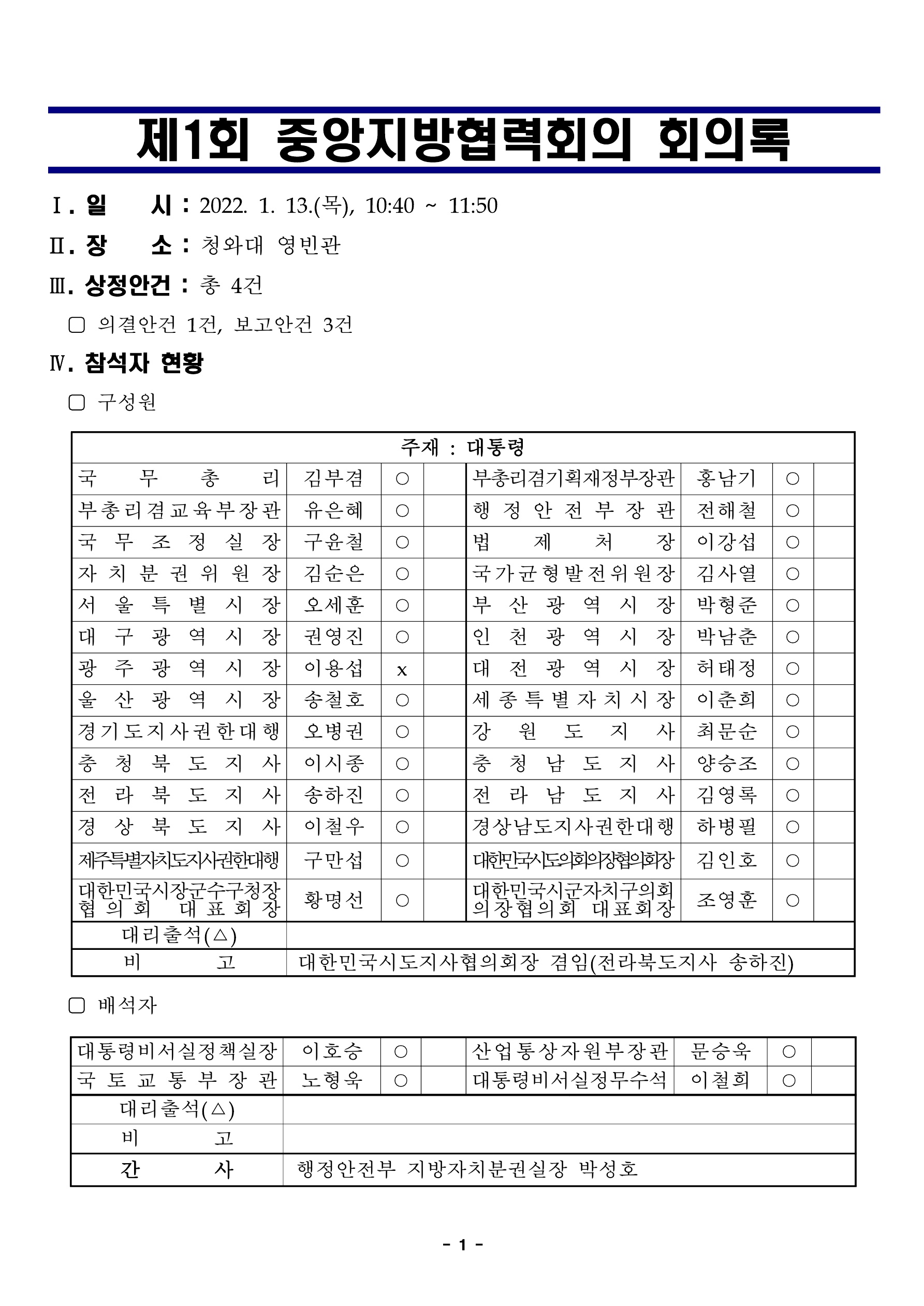 | 79 | 일반기록물 | 제1회 중앙지방협력회의 회의록 | 행정안전부 자치행정과 | 2022 |