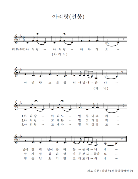 ※ 녹음된 음원에서 채보한 악보는 실제 가사와 상이할 수 있음