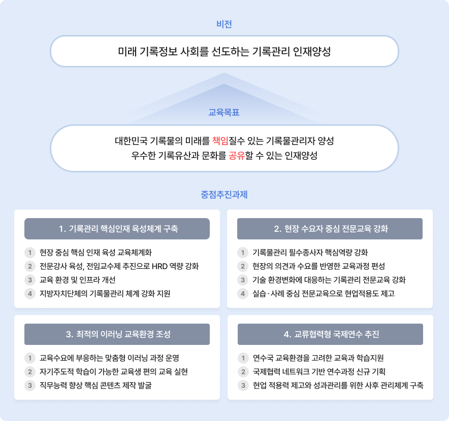 - 민간기록물 수집‧관리 조례 제정('23~'24) 및 5개년 계획 수립('25~'29) 등 민간기록물 수집‧관리를 위한 인프라 구축 및 발굴·활용 등을 위한 공모전·전시회를 개최하였고, 보존기간 30년 이상 비전자기록물 디지털화 추진('07~'24, 종이 62,184권, 사진 393,311컷 등), 직속기관 및 사업소 기록물 전수조사 실시('22, 70,236권 목록화), 시청각기록물 디지털화 추진 등 디지털 아카이브시스템구축을 통해 기록물 활용 서비스 업무에 기여했다.